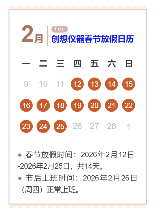 2026年無錫創想分析儀器有限公司春節放假通知: